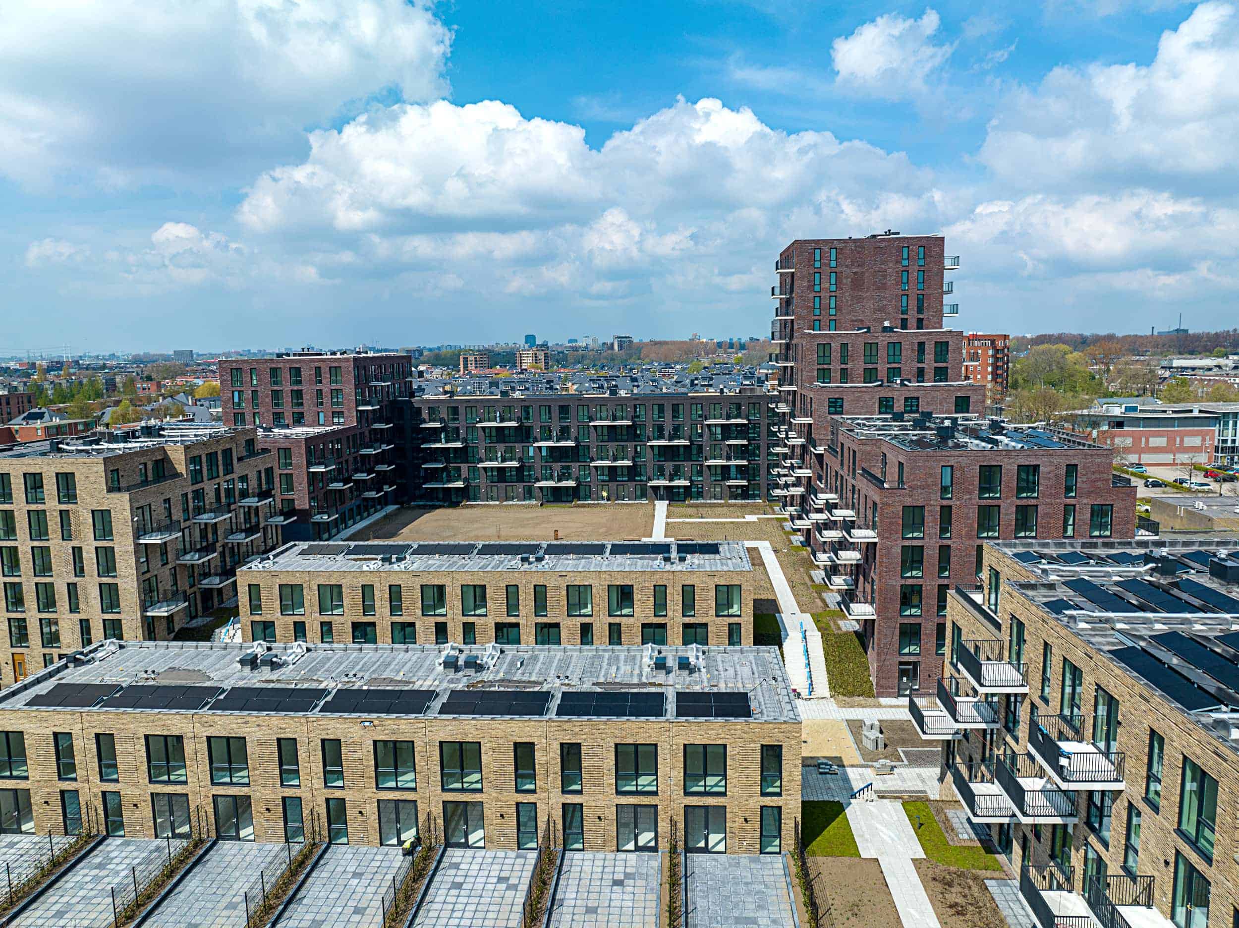 In opdracht van Van Wijnen (Dordrecht) hebben wij alle daken voorzien van isolatie en dakbedekking. Daarnaast stonden we voor de uitdaging naast de binnentuin met de opstanden, om het dak veilig te maken voor onderhoud omdat er veel PV panelen en kanalen bovendaks werden geplaatst. Door gezamenlijk met de werkvoorbereiding van Van Wijnen te ‘bimmen’ en te engineren, zijn we tot het beste resultaat gekomen. Naast de zichtbare verduurzaming is ook gekozen voor het juiste dakmateriaal waarvan het snijafval bij onze HUB in Capelle aan den IJssel is gebracht om te recyclen.